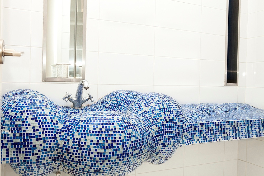 이국적인 매력의 욕실은 곡선이 매력적인 세면대가 있어 거울 셀카 찍기 참 좋은 곳이다. 욕실에서 세면대와 샤워도, 변기는 모두 분리되어 있다. 객실 타입에 따라 원형 욕조, 사각 욕조 등으로 구분돼 있으니 원하는 디자인의 객실이 있다면 올스테이 예약 시 미리 요청해 보는 것도 방법 중 하나이다.