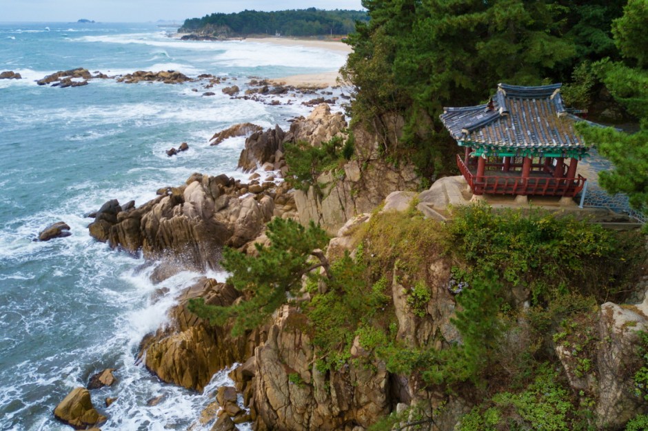 천학정은 송림으로 둘러싸인 기암괴석 해안 절벽 위에 자리한 정자로, 오르면 탁 트인 동해바다가 펼쳐진다. 이곳은 잘 알려지지 않은 일출 명소로도 유명한데, 소노캄 델피노에서 차로 17분 거리로 멀지 않으니 꼭 들러보자.