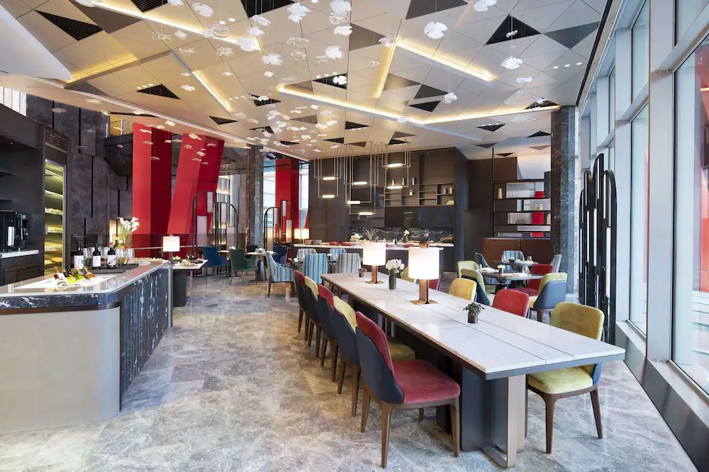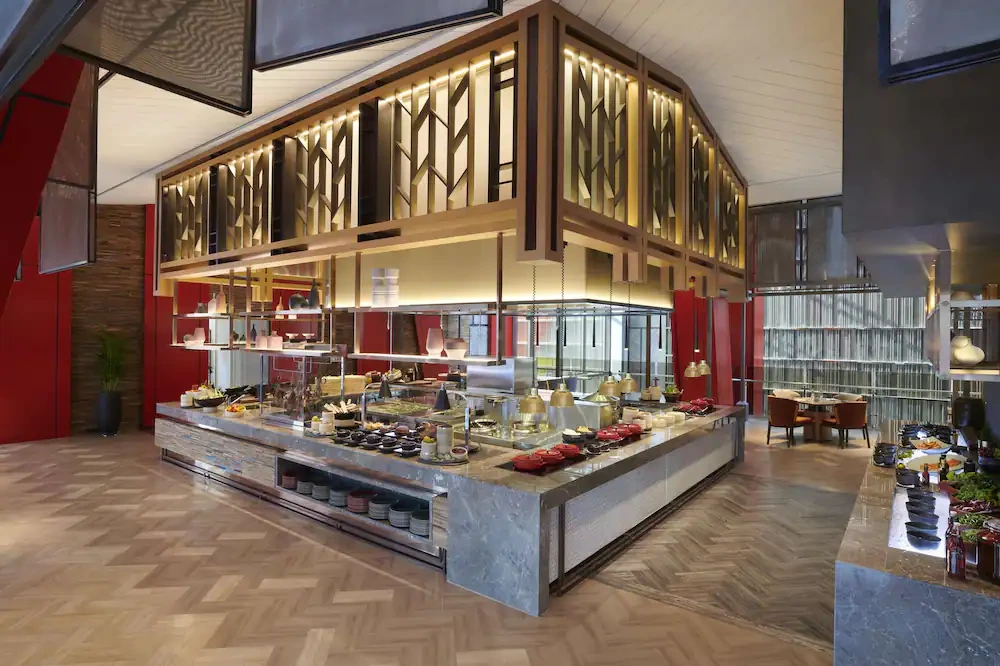 조식은 5층 스펙트럼 레스토랑에서 오전 6시 30분부터 10시까지 뷔페로 운영된다. 한식과 중식, 양식을 아우르며 전 세계 요리를 맛볼 수 있다. 북경 오리와 양고기 등을 제공해, 웬만한 디너 뷔페 수준이다.