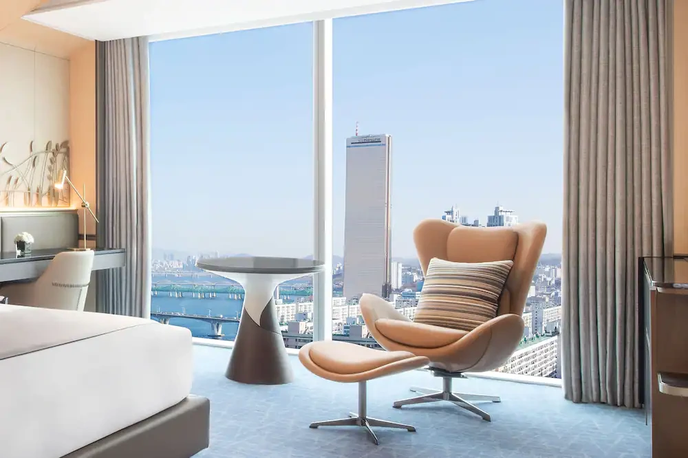 새롭게 여의도 랜드마크가 된 파크원 단지 내 위치했다. 한국 전통 건축 양식에 붉은색 기둥으로 중심을 잡은 미래지향적인 디자인이 특징이며, 객실도 모던 럭셔리를 콘셉트로 꾸며놔, 젊은 감각이 느껴진다.
