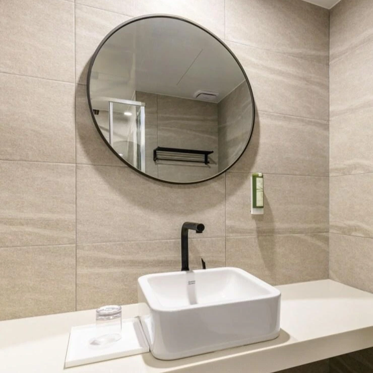 욕실은 세면대와 변기, 샤워실이 모두 분리된 구조로 좀 더 쾌적하고 편리하게 사용할 수 있다. 어메니티로는 샴푸와 린스, 바디클렌저, 비누, 수건, 헤어드라이어 등이 준비된다. 치약과 칫솔, 바디스폰지, 헤어캡, 면도기 등 일회용품은 프런트 데스크에서 1천 원에 2인용을 구매 가능하다.