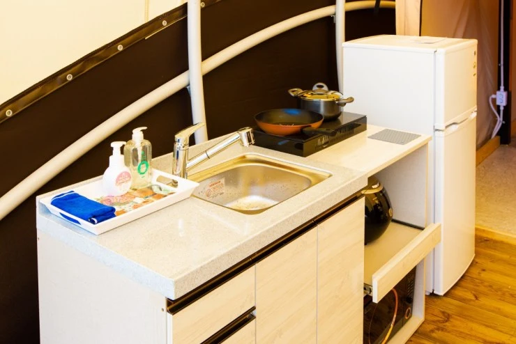 포천 글램핑 노블 펜션의 모든 객실에는 독립된 조리 공간이 마련되어 있다. 조식이 제공되진 않지만 냉장고와 핫플레이트, 전자레인지 그밖에 냄비, 전기밥솥, 그릇 등 준비되어 있어 웬만한 요리는 문제없이 가능하다.