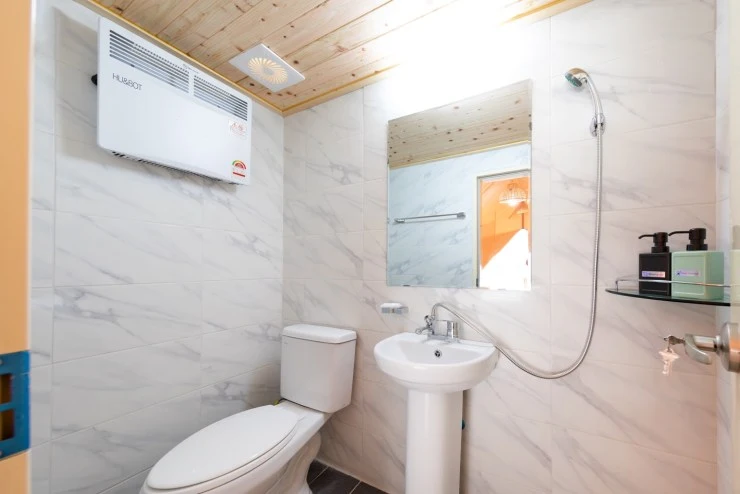 샤워실 겸 화장실이 객실마다 설치되어 있어 편리하게 이용 가능하며, 무엇보다 청결 상태가 너무 좋다는 후기가 많이 발견됐다. 어메니티도 샴푸, 바디워시, 비누, 헤어드라이기 등 제공되며, 치약과 칫솔, 수건은 개별적으로 가져와야 한다.