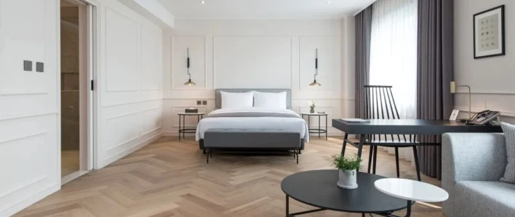 알렉스 72 수원 호텔 객실 인테리어는 대체로 모던하고 트렌디한데, 주니어 스위트룸은 유러피안 스타일의 인테리어로 꾸며져 있어 여유로운 크기의 객실에 퀸 사이즈 침대, 50인치 TV, 소파, 데스크, 의자, 협탁, 조명 등이 구비되어 있다.