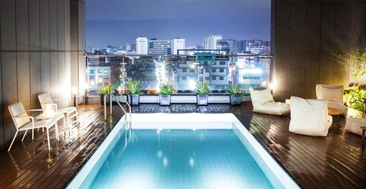 요즘 SNS에서 떠오르는 인생샷 명소! 호텔 가덴의 루프탑 수영장이다. 루프탑 수영장은 오전, 점심, 저녁 딱 세 타임만 예약제로 운영되고 있는데, 한 번에 딱 한 팀씩만 이용 가능해 눈치 볼 필요 없이 물놀이도 즐기고, 사진도 찍을 수 있다. 참고로 10월 31일까지 운영된다.