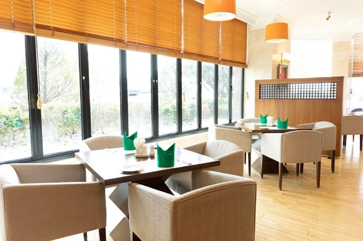 아침 식사는 1층에 위치한 레스토랑 토파즈에서 제공된다. 다양한 음식이 제공되는 뷔페식으로 탁 트인 바깥 풍경을 감상하며 여유로운 식사를 즐겨보도록 하자.