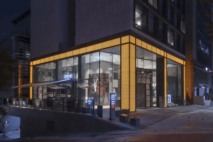 강남 빌딩 숲 사이에 자리한 호텔은 그레이 톤의 깔끔한 외관으로 주변과 잘 어울린다. 로비층에는 조명을 설치해, 늦은 밤에도 쉽게 찾아올 수 있는데, 실내는 블랙과 그레이, 화이트로 심플하게 꾸며 놨다.