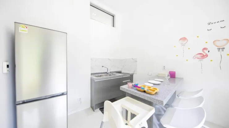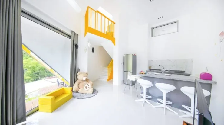 텔렘풀빌라는 전 객실 독채로 이루어져 가족과 함께 언택트한 여행을 즐기기에 제격인 곳이다. 사진 속 객실은 ‘앨리스’로 1층은 주방 및 거실, 2층은 놀이 공간과 침실로 분리돼 있다.