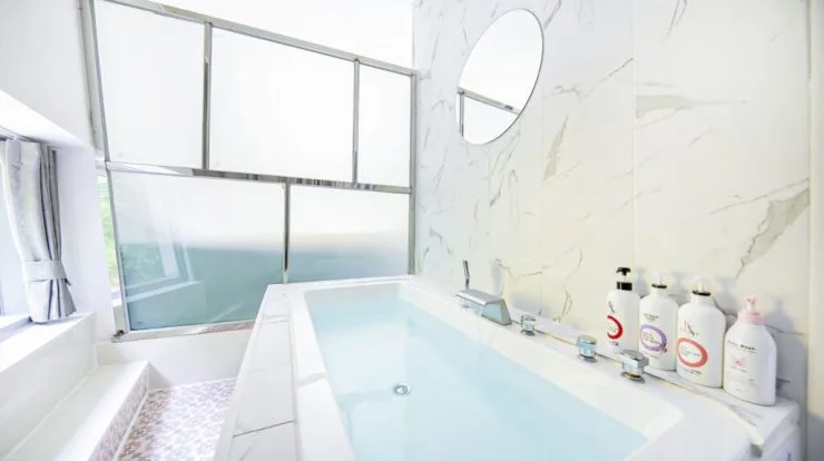 욕실에는 샴푸와 린스, 바디워시 등이 준비되어 있다. 특히 욕조가 준비되어 아이들을 씻길 때 훨씬 편리하게 이용할 수 있다. 아울러 유아용 물품들도 꼼꼼히 구비되어 있는데, 젖병 소독기, 바운서 등은 대여도 가능하다.