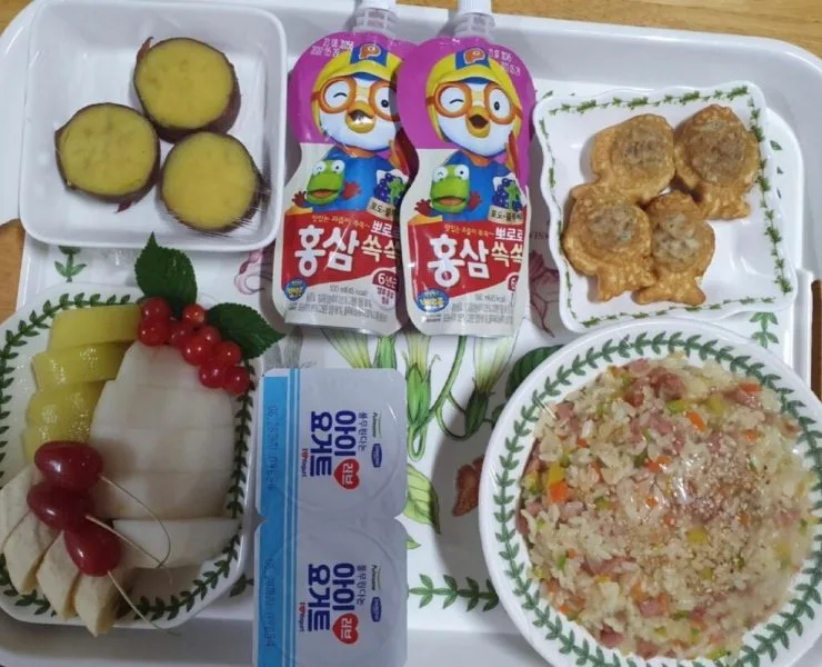 콩콩키즈풀빌라에서는 매일 아침 오전 8:30분 직접 만든 어린이 조식을 제공되고 있다! 볶음밥과 과일, 요거트, 간식으로 구성되어 정성 가득, 영양만점 조식으로 아이들에게 인기 만점이다!