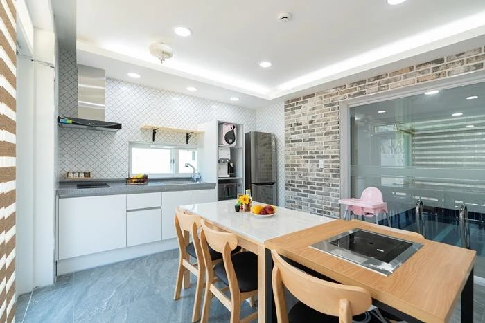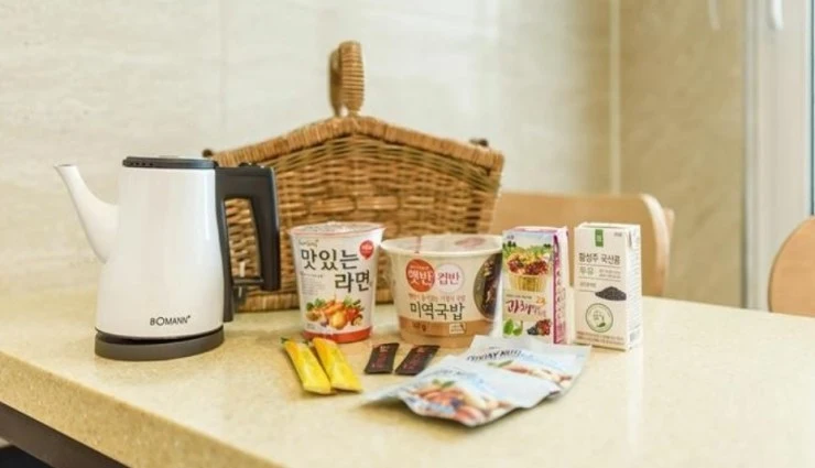 조식이 따로 제공되지는 않지만, 객실 내에서 취사가 가능하다. 냉장고, 전기밥솥, 전자레인지, 핫플레이트, 정수기 등이 준비되어 있고 큼직한 식탁과 유아용 식탁, 식기류도 모두 준비돼 있다.