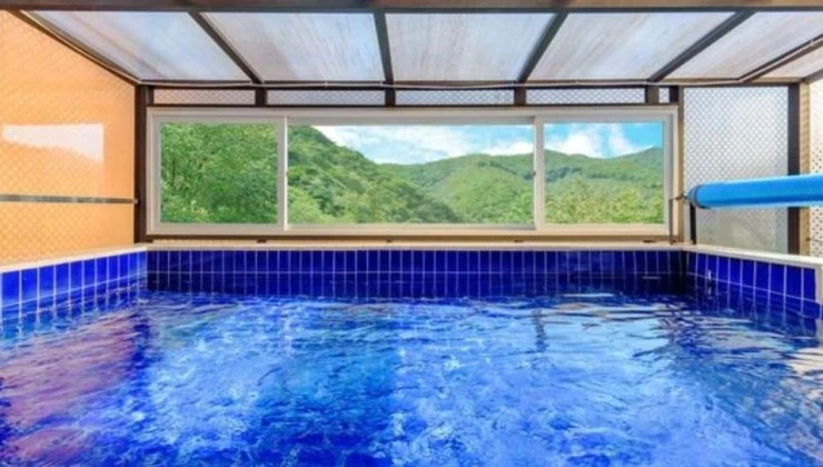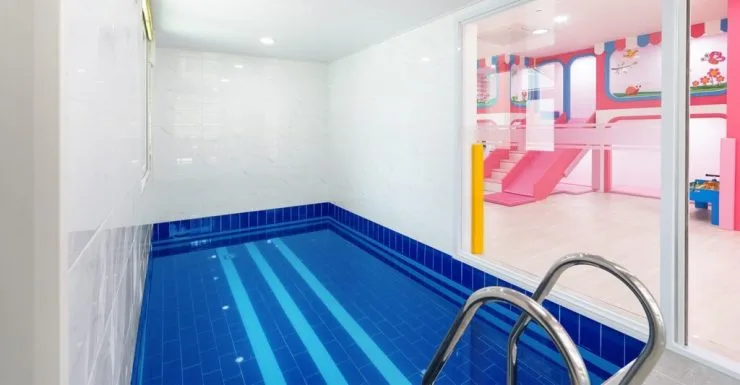 객실에는 아이와 함께 물놀이를 즐길 수 있는 초대형 개별 수영장이 준비되어 있으며 가을, 겨울철에는 미온수 비용을 5만 원을 추가하면 따뜻하게 물놀이를 즐길 수가 있다. 수영장 사이즈에 비해 온수 이용료가 저렴하게 책정되어 있어 투숙객들의 후기가 좋은 편이다.