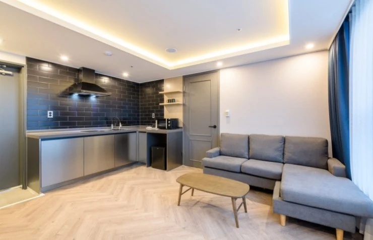 레지던스 객실은 실내 취사 가능하다. 대용량 냉장고와 전자레인지, 전기 인덕션 등이 있어 장기 숙박도 문제없다. 제주 한달 살기 숙소로도 딱인 제주공항 근처 호텔이다.