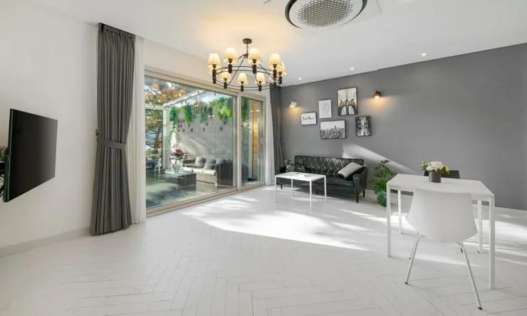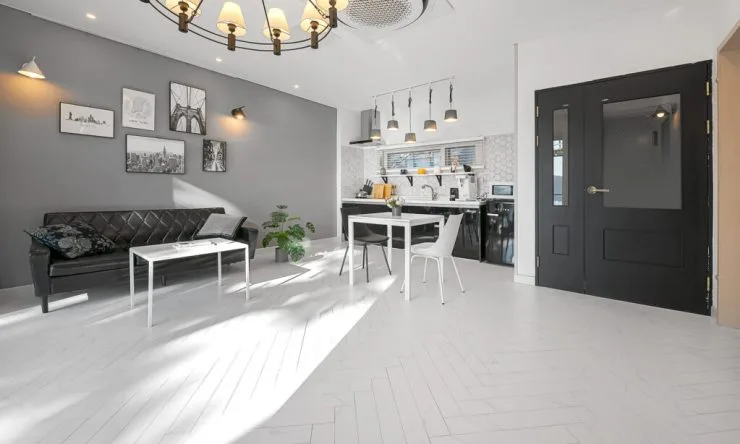 해지음풀빌라는 세련된 인테리어가 매력적인 곳이다. 특별한 날을 더욱 특별하게 만들어주는 곳이다. 101호는 블랙&화이트의 시크한 느낌이 두드러지는 객실이다.