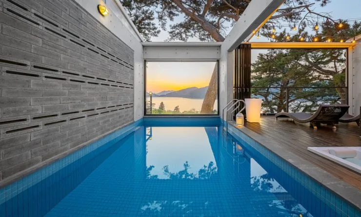 통영 풀빌라에는 초대형 야외 수영장도 있어요! 사계절 이용 가능한 인피니티 풀로 언제나 즐거운 시간을 보낼 수 있다. 해외 부럽지 않은 멋진 풍경이 기다리고 있을 거다.