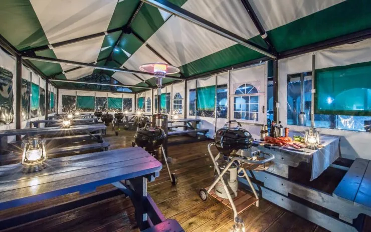 아라풀빌라에서는 실외 개별 몽골텐트에서 프라이빗한 바비큐 파티도 즐길 수 있다. 숯과 그릴은 2인 기준 20,000원으로 18:00 ~ 20:00 사이 요청할 수 있다. 바비큐장은 22시까지 이용할 수 있어 여유롭게 식사를 할 수 있다.