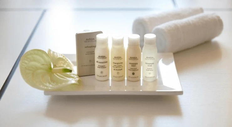 아베다 욕실용품 일체가 제공된다. 샴푸와 컨디셔너, 바디워시, 바디로션이 포함돼 있다. 칫솔과 치약, 면봉, 화장솜, 빗, 목욕가운, 3종 수건, 드라이기 등도 빠짐없이 구비했다.