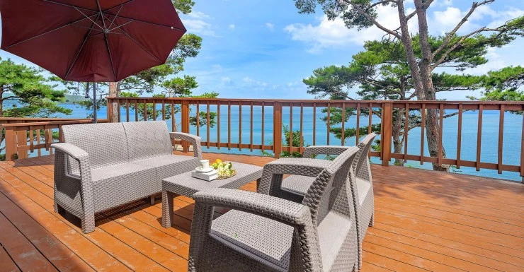 개별 테라스에서 맛있는 바비큐 파티도 가능하다. 2 ~ 3인은 15,000원 / 4 ~ 5인은 20,000원의 추가 요금이 부과된다. 오션뷰와 함께 맛있는 식사를 즐겨보자.