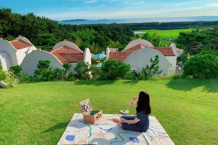 태안 감성숙소 그람피하우스에서는 로맨틱한 피크닉도 즐길 수 있다. 피크닉 가방과 매트를 무료로 대여해 주니 즐기기만 하면 된다.