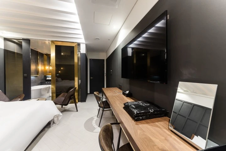 로비에는 넓은 투숙객 휴게 공간이 마련돼 있다. 전 객실에 일체형 PC를 갖춰놔, 지루할 틈이 없다. 객실에 따라, 글램핑 시설과 스파 욕조, 노래방 등을 마련해 놨다. 프라이빗한 휴식을 즐겨 보자.