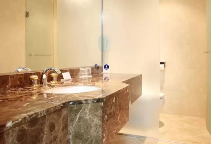 욕실에는 샤워부스가 설치되어 있고 어메니티로 샴푸와 린스, 샤워젤, 바디로션, 비누가 준비된다. 이와 함께 헤어빗과 샤워캡, 면봉, 화장솜, 칫솔, 치약, 면도기, 바디 스펀지, 수건, 드라이기도 구비되어 있다.