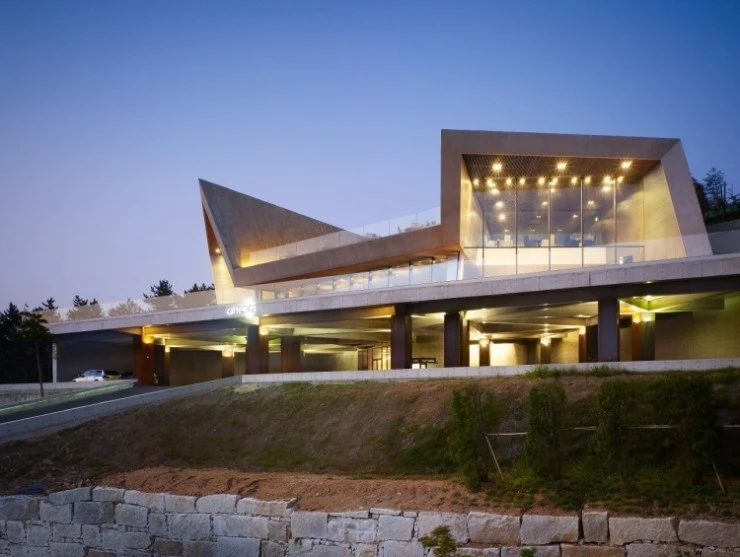 카페 오라는 독특한 외관이 눈길을 사로잡는 을왕리 카페로 한국 건축문화대상을 받았을 정도로 멋진 건물이라 가볼 만한 가치가 있다.