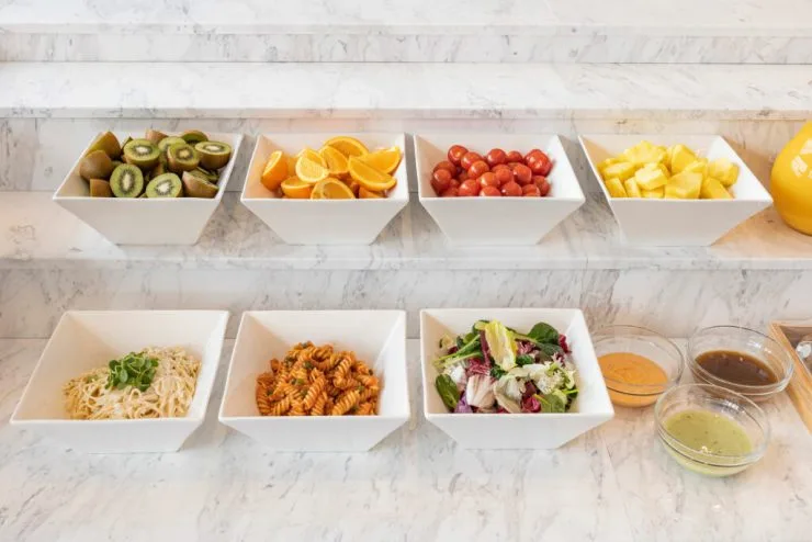 을왕리 호텔 조식은 07:00 ~ 10:00 사이 제공돼요. 원래는 더 파이브에서 뷔페식을 이용할 수 있었으나 현재는 사회적 거리 두기에 따라 단품 메뉴로 대체되었다. 빵과 샐러드, 오믈렛 등이 도시락 형태로 제공된다.