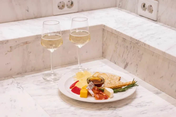모든 투숙객에게는 토마토 카프레제와 화이트 와인 2잔이 서비스로 제공된다. 달콤한 와인과 함께 로맨틱한 저녁 시간을 보내보도록!