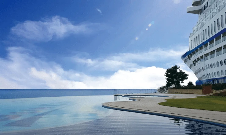 크루즈 형태의 호텔은 해외 SNS에서도 화제가 될 만큼 독특한 외관을 자랑한다. 크게 썬크루즈와 비치 크루즈로 나뉘며, 풀빌라부터 듀플렉스까지 객실 타입이 다양하다. 갖가지 조명과 대리석을 사용해, 고급스러운 분위기를 띤다.