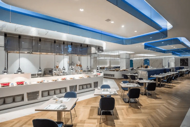 조식은 세인트존스 호텔 오션타워 3층 오크랩 레스토랑에서 오전 7시부터 10시까지 운영된다. 양식 중심의 뷔페로 제공되나, 쌀국수와 볶음밥 등을 갖춰 부족한 느낌은 없다. 유아용 식기도 야무지게 구비했다.
