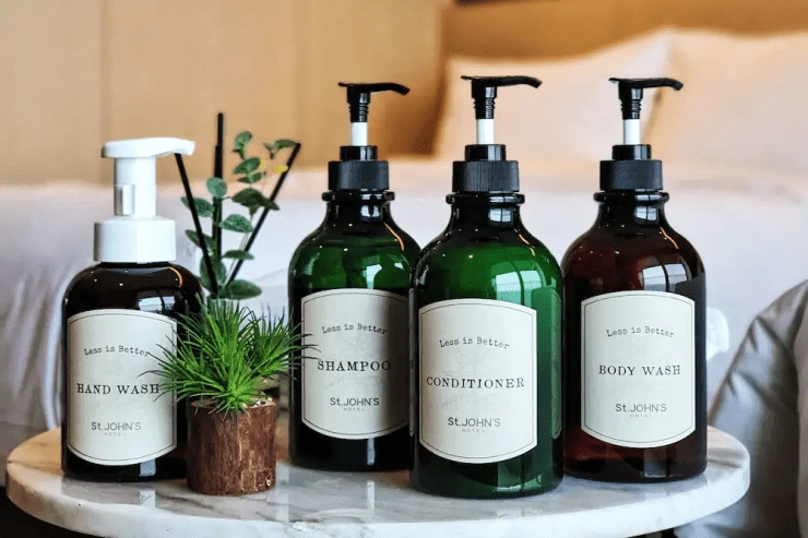 욕실에는 비데가 설치돼 있다. 친환경 정책으로 인해 샴푸와 컨디셔너, 바디워시, 핸드워시는 다회용 제품으로 제공된다. 칫솔과 치약, 슬리퍼 등 일회용품은 호텔 자판기에서 구입 가능하다.