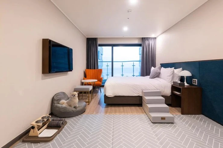 해당 객실에서는 오션뷰도 즐길 수 있는데, 애견동반 객실은 뷰가 좋은 곳이 흔하지 않은데 이곳은 뷰도 만족스럽다. 반려견들이 부딪히거나 다칠 수 있는 가구나 소품을 최소화해 안전하다.