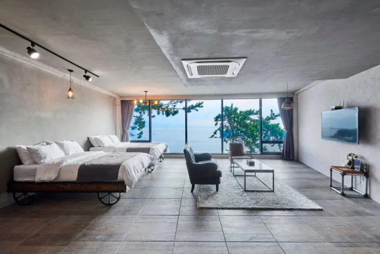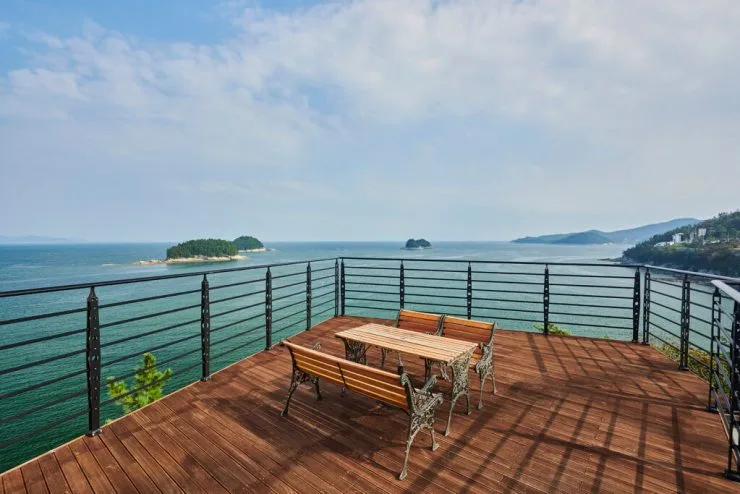 예술랜드 리조트 내 일부 객실에는 테라스도 있습니다. 막힘없이 탁 트인 뷰를 누릴 수 있는 공간이죠. 오션뷰 테라스에서 커피 한 잔의 여유를 누려보도록 하자.