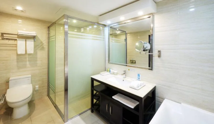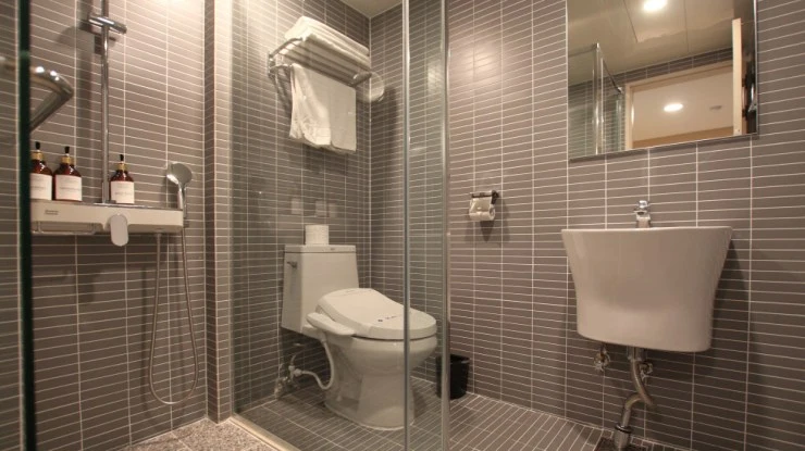 객실 내 욕실은 현대식으로 사용하기 편리하다. 어메니티는 샴푸, 린스, 바디워시가 구비되어 있는데, 칫솔과 치약은 제공하지 않으니 챙겨가야 한다.