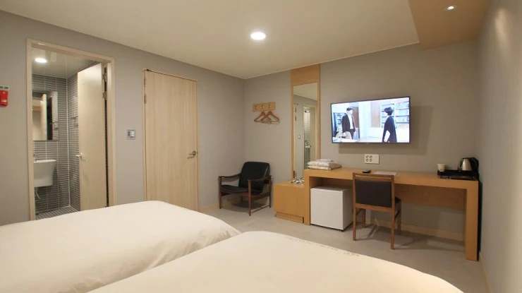 트윈룸은 1인용 베드 2개가 나란히 배치되어 있다. 데스크와 컴퓨터도 준비돼 있어 비즈니스호텔로도 손색없다. 여행 중 필요한 정보를 찾을 때에도 유용하다.