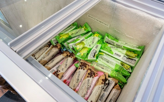 속초모텔 로비에는 셀프 바가 준비돼 있다. 빵과 커피, 음료수, 아이스크림 등이 비치되어 있다. 언제든지 원하는 만큼 이용할 수 있다.