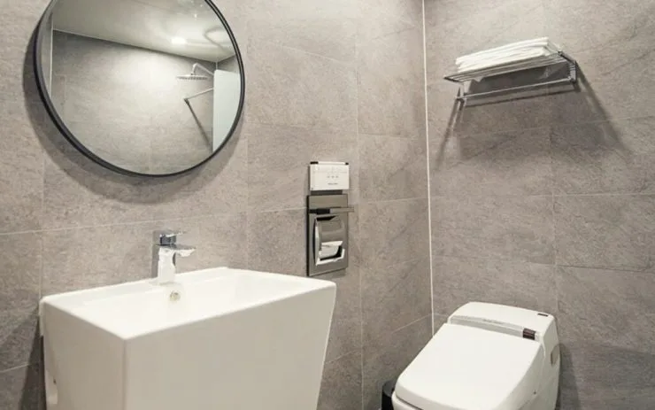 어메니티는 샴푸, 린스, 바디워시, 바디로션이 갖춰져 있다. 칫솔, 면도기, 코튼 세트, 빗 등의 물품도 꼼꼼히 구비되어 있다.