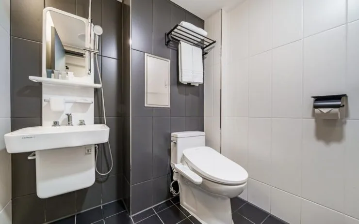 욕실도 매우 깔끔하다. 어메니티는 샴푸, 린스, 바디워시, 로션, 칫솔, 치약 등이 꼼꼼하게 구비되어 있다.