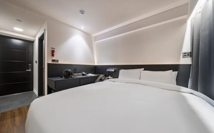 객실에는 편안한 더블베드가 준비돼 있다. 사각거리는 호텔식 침구는 보기만 해도 잠이 쏟아진다. 다용도로 활용 가능한 데스크도 있다.