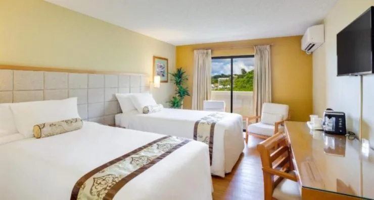 투몬 베이에 있는 괌숙소 투몬베이 캐피탈 호텔은 하루 8만 원대에 예약 가능한 독보적인 가성비를 자랑한다. 물론 JP 슈퍼스토어, 언더워터 월드 등과 같은 관광 명소와 인접해 있어 접근성 역시 편리하다.