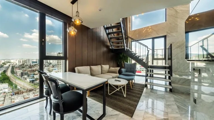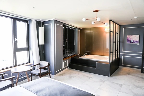 JK 블라썸 호텔 객실은 깔끔한 대리석 바닥과 함께 스타일러를 보유하고 있다. 객실에는 스파, 루프탑에는 야경이 기다리고 있다. 리버뷰와 함께 글램핑 분위기를 즐기며 바비큐를 할 수도 있다. 이곳은 특히 가성비 좋은 호캉스를 즐길 수 있는 곳으로 평일에 이용한다면 10만 원 안팎이면 예약할 수 있다.