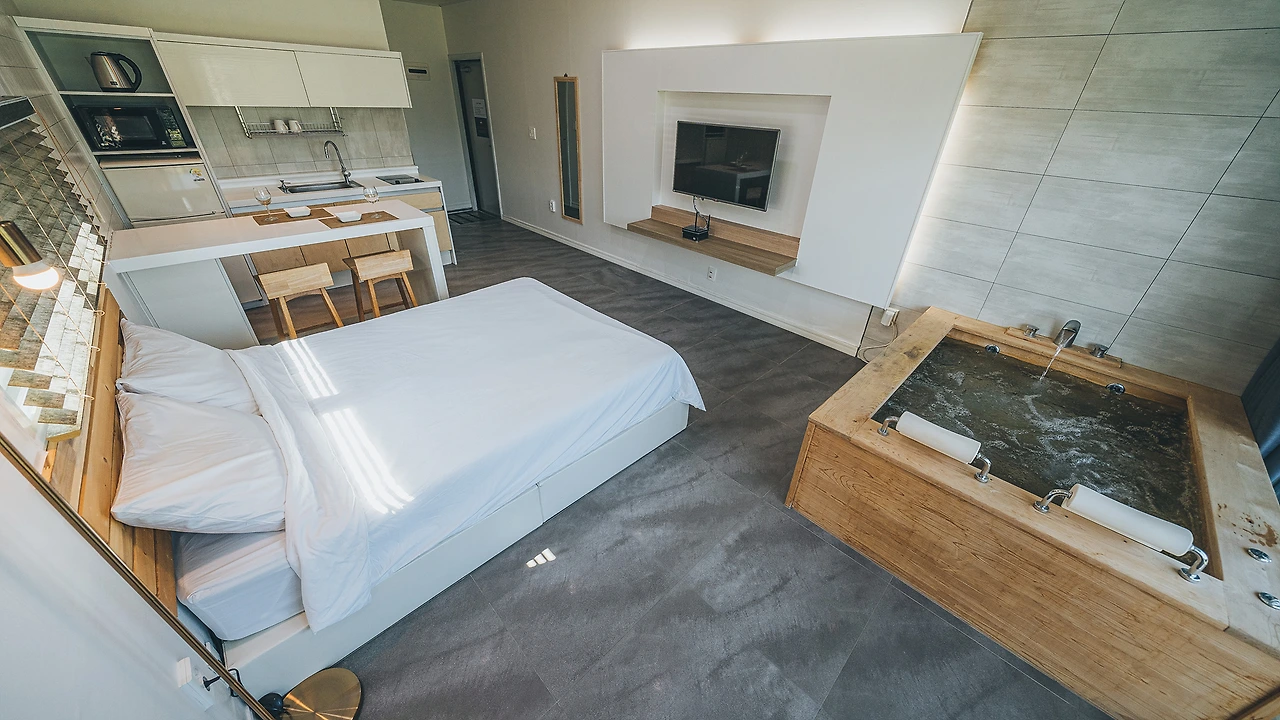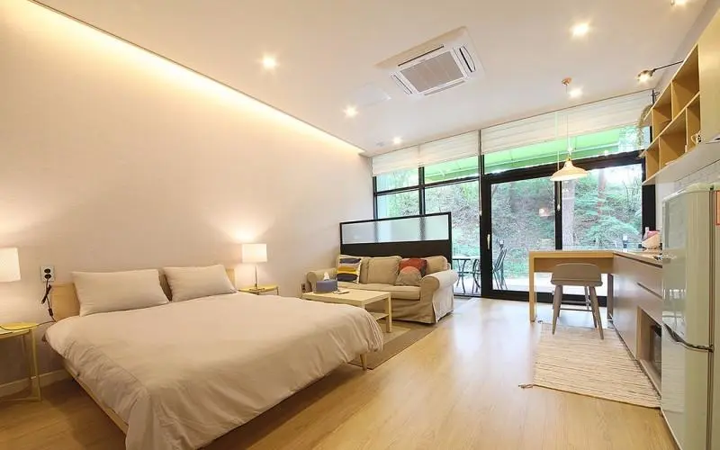 객실은 총 7개를 보유하고 있다. 원룸형 객실부터 복층형까지 다양하게 준비되어 있는데 대체로 우드와 화이트 톤으로 화사하면서도 아늑한 분위기로 꾸며져 커플 여행에 인기가 높다.