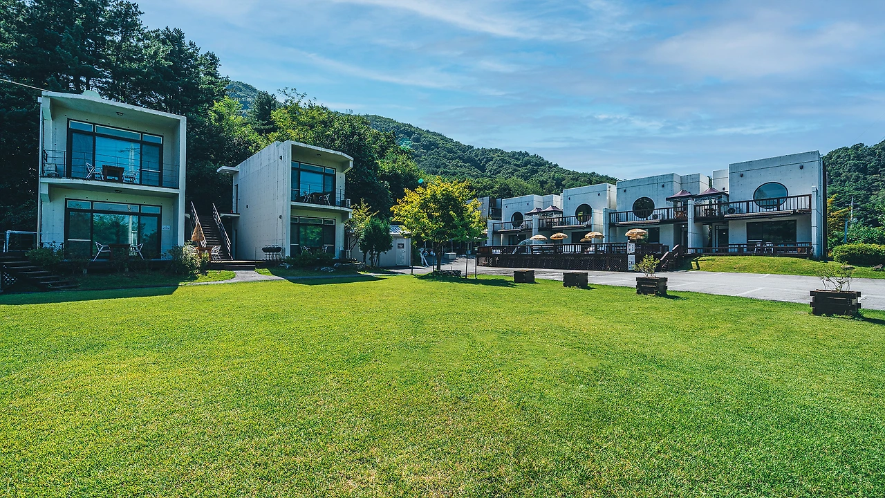 우드와 화이트 인테리어를 바탕으로 각자 블루, 그린 포인트 컬러를 주었다. 전 객실 히노키탕 그리고 개별 바비큐 테라스를 갖추고 있으며, 26평에서 최대 47평형으로 널찍한 공간을 자랑한다.