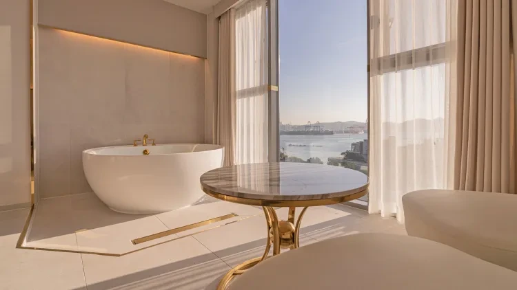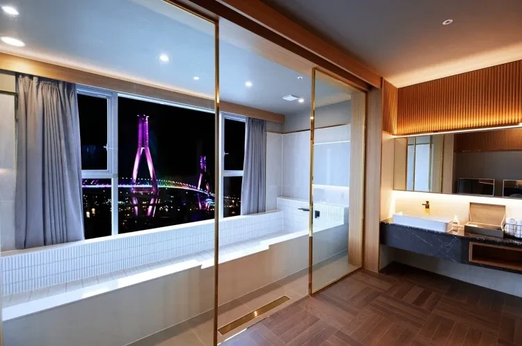 친구들과 함께 온다면 통유리창 너머 오션뷰를 배경으로 여러 인생샷을 남기며 흐뭇해할 수 있다. 로얄 스위트룸은 풀 욕조와 거실, 방, 화장실로 이루어져 있다. 객실에는 공기청정기와 스타일러, 컴퓨터, TV 등을 갖추고 있다.