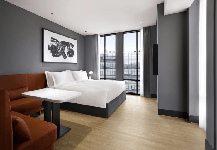 지난해 12월 문을 연 호텔은 총 306개 객실을 보유했다. 크게 비즈니스 디럭스와 프리미어 디럭스, 밸리 스위트, 그래비티 스위트로 나뉜다. 올스테이 하면 10만 원대부터 예약할 수 있다.