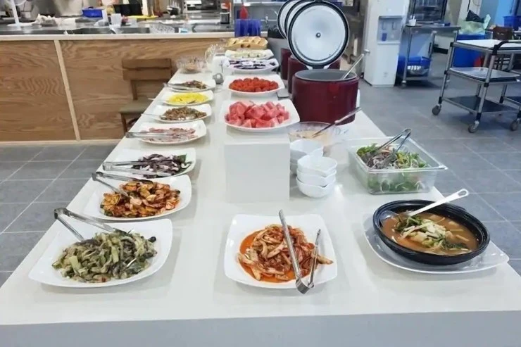 조식은 07:00 ~ 09:00 사이에 뷔페식으로 제공된다. 든든한 한식 뷔페로 골라 먹는 재미가 있다. 1인 7,000원으로 가성비도 매우 좋다.