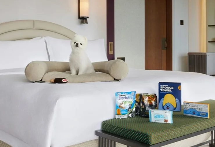 사랑하는 반려견을 두고 호캉스를 즐기자니 마음이 불편했을 텐데, 조선 팰리스에는 반려견 동반 객실이 마련되어 있다. 반려견 동반 객실에는 웰컴 어메니티로 하림 더 리얼 퀴진, 치석 껌, 펫 전용 배스 밤, 스펀지 타월, 펫 티슈, 펫 토이가 갖춰져 있으며, 드라이어, 펫 전용 하우스 및 쿠션, 욕조, 식기, 배변 판 & 배변패드, 유모차 등은 대여 가능하다.