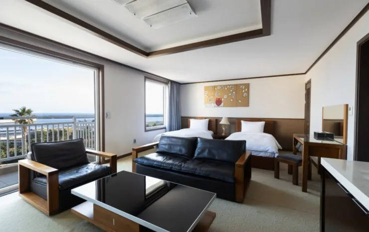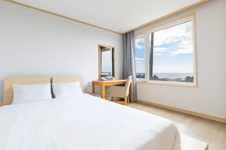 객실 전망은 장엄한 한라산이 내려다보이는 마운틴뷰와 푸른 제주 바다가 한눈에 들어오는 오션뷰로 나뉜다. 모두 아름답지만, 오션뷰를 원하는 분은 3만 원을 추가 납부하고 바다 전망 객실을 선택할 수 있다.