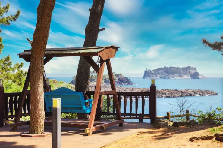 숙소는 외돌개와 월평포구로 이어진 올레길 7코스 중간에 위치했다. 억새와 들꽃이 만발한 길이어서, 아기자기한 감동 포인트가 많다. 이른 아침 일출도 아름답지만 곳곳에 포토존도 설치해 놔, 언제 방문해도 좋다.
