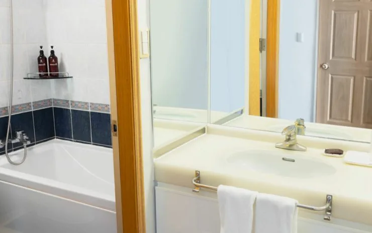 욕실에는 샴푸와 컨디셔너, 샤워젤이 리필형 용기로 제공된다. 이외 수건과 욕실화, 양치컵, 비누, 드라이기가 비치돼 있다. 아기 욕조는 요청 시 세팅해 주세요. 칫솔과 치약은 따로 챙겨 와야 한다.